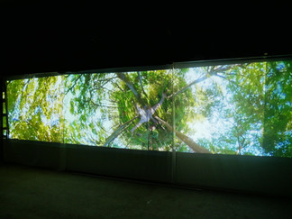 Some of the images, 360 photographs, I took through 2021-22 have been edited into a 360 panoramic work lasting about an hour in duration. The final configuration of the work has not been decided, whether it be a box or a circular voile screen. The images below were projected onto a flat letterboxthe screen, using four Sanyo HD projectors. This is one possibility for the work.